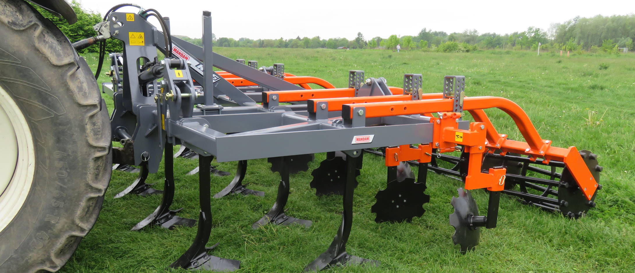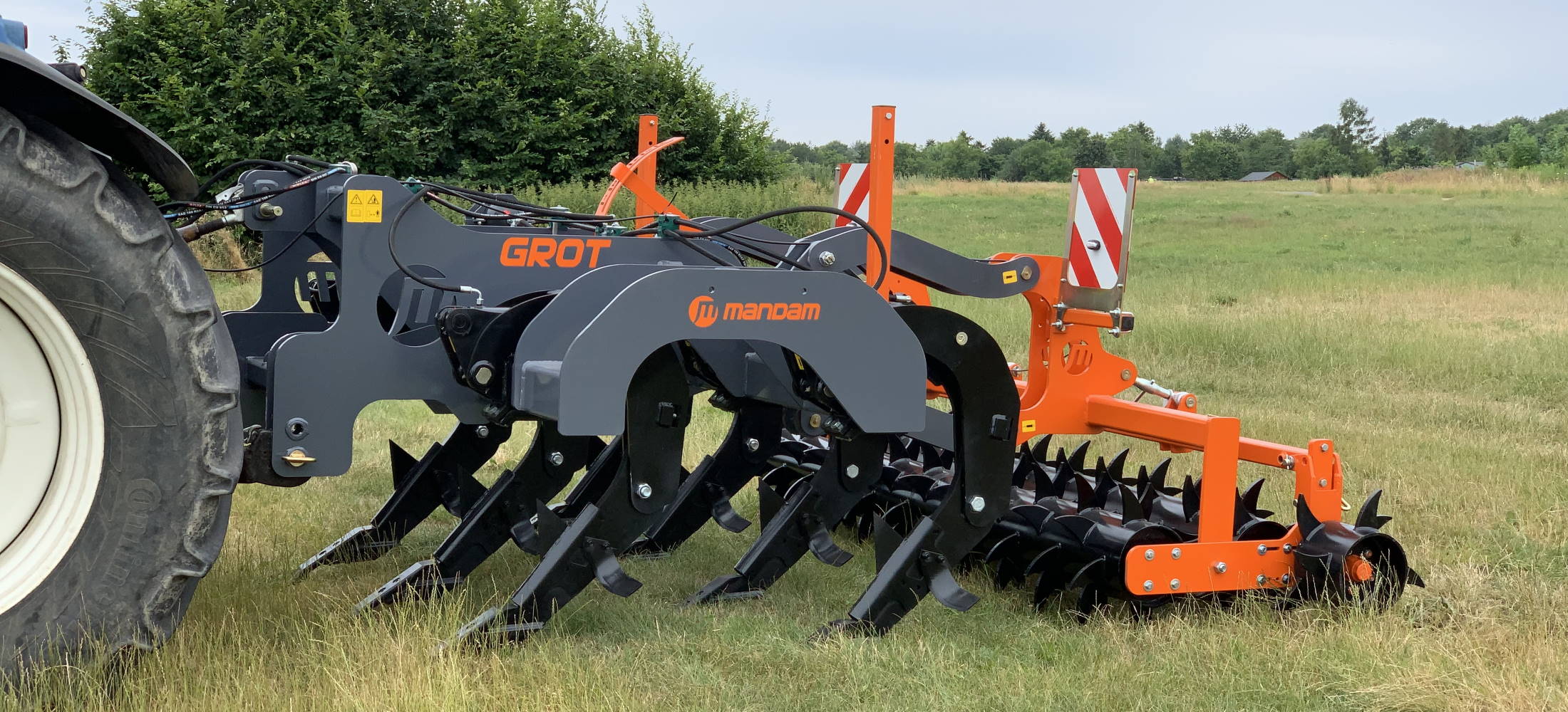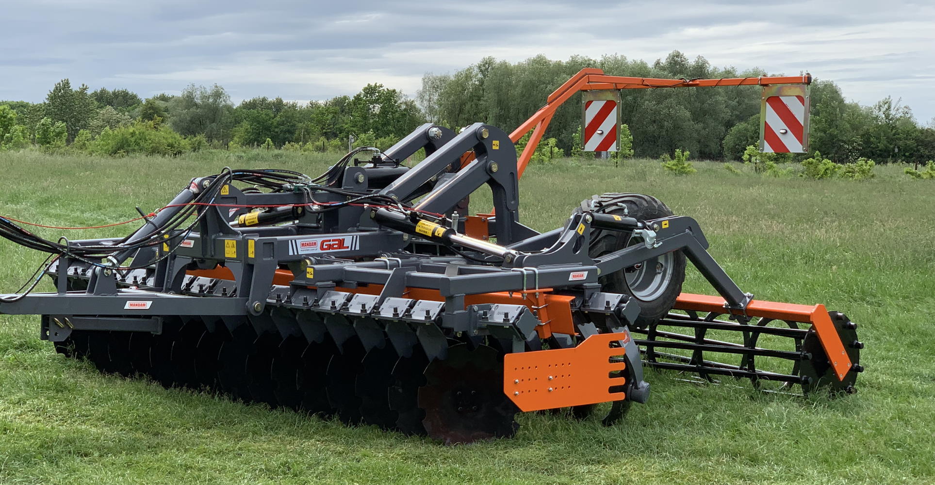 The GAL-E disc harrow is designed for post-harvest and pre-sowing cultivation, both with and without tillage. The unit can also be used for mixing catch crops or cultivating uncultivated areas with tall, self-seeded plants. Like all Mandam disc harrows, also GAL-E is equipped with 5-year warranty maintenance free Mandam quick release disc hubs. Unlike the GAL-C version, the GAL-E disc harrow features arms on cylinders that hydraulically lift the roller during transport & storage. Additionally, the center distance between the disc rows has been reduced to 800mm, making the entire machine more compact, facilitating transport, storage and maneuverability.