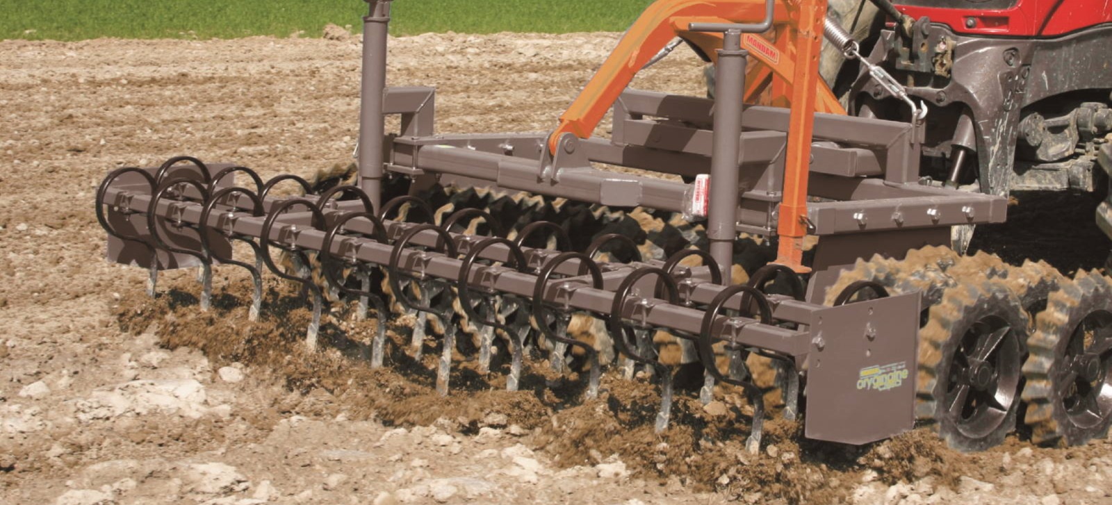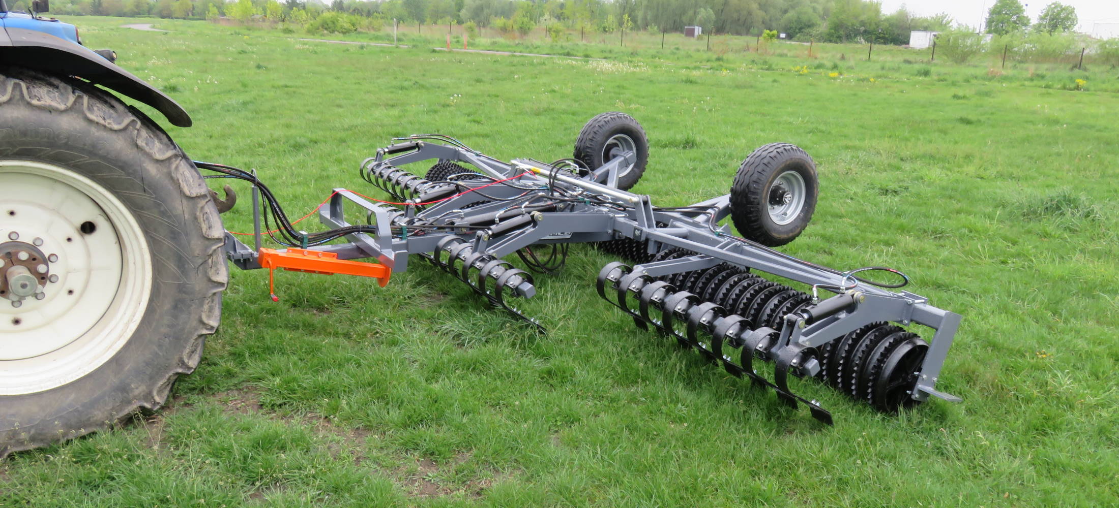 Recomended for stony conditions. The –K machine has an integrated transport chassis, located inbetween disc and roller sections. This arrangement ensures good weight distribution, ensures even pressure on the ground, while reducing unwanted vibrations of the machine. 5-year warranty, maintenance free disc hubs are mounted to the robust leaf springs, allowing great disc travel & exceptional. The machine’s standard equipment includes hydraulic depth adjustment. There are many options to choose from: various discs, tine screens, traffic lights, brake systems, oversize tires, different rollers and more.