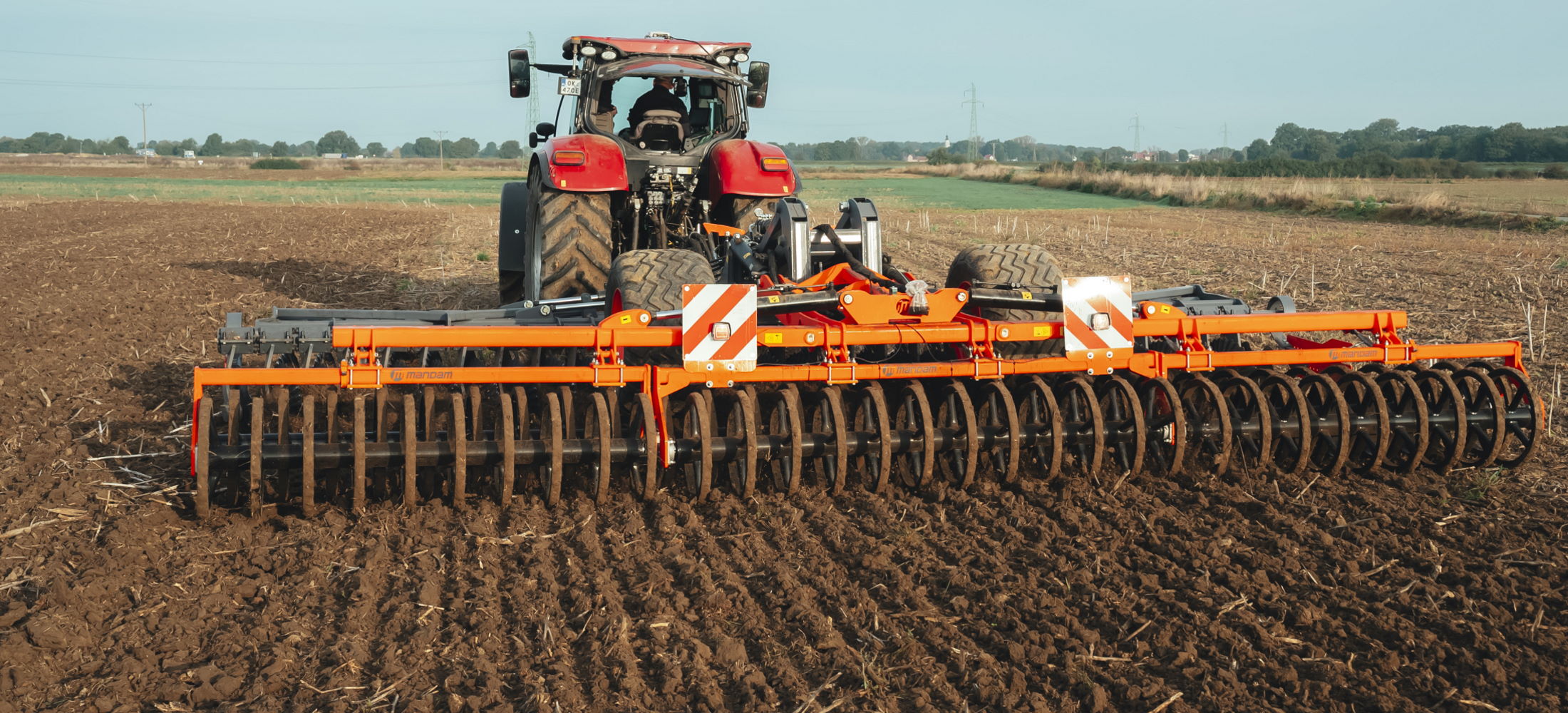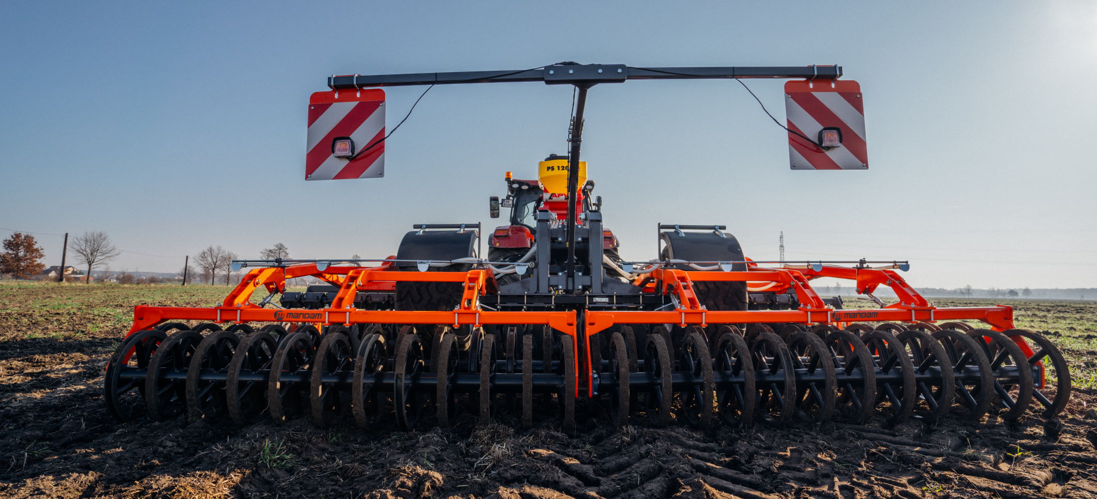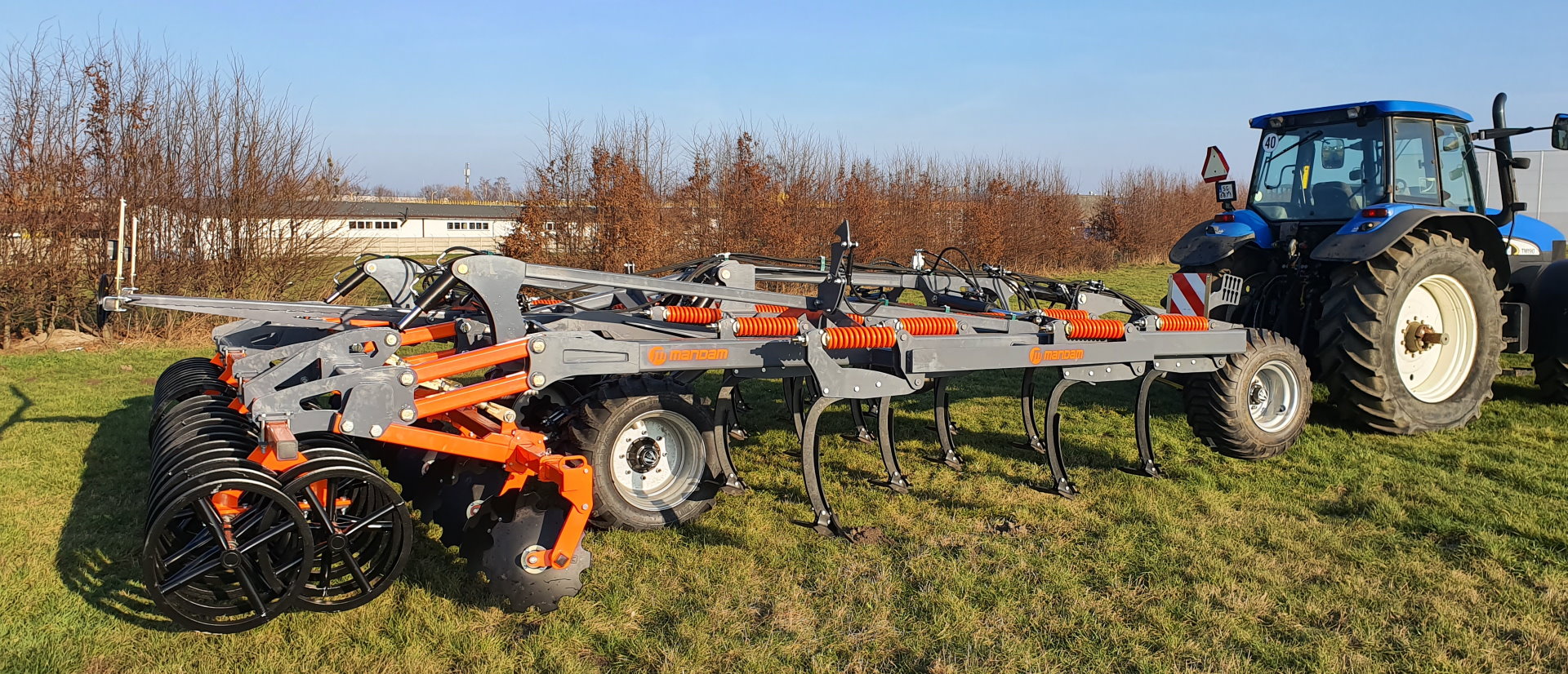 Mandam GAL-K trailes disc harrows are offered at working widths from 4 to 12 m for tractor power ranges between 150 and 500 HP. Models with working widths up to 6 m are available with an integrated chassis placed between the second row of discs and the tillage rollers. Models with widths of 8/10/12 m have a separate carriage with one (8/10 m) or two (12 m) drive axles. Quick replacement maintenance free hubs have a 5-year warranty. They also feature adjustable his solution minimizes the risk of machine clogging. The disc hubs are maintenance-free and have a 5-year warranty (without a limit on the number of hectares worked). As standard, the customer receives a hydraulic folding lock, hydraulic adjustment of the working depth and a hydraulically folded chassis. The machine has plenty of options, such as: 6 types of discs, 10 types of rollers, transport lighting, homologation package, tine screens and more.