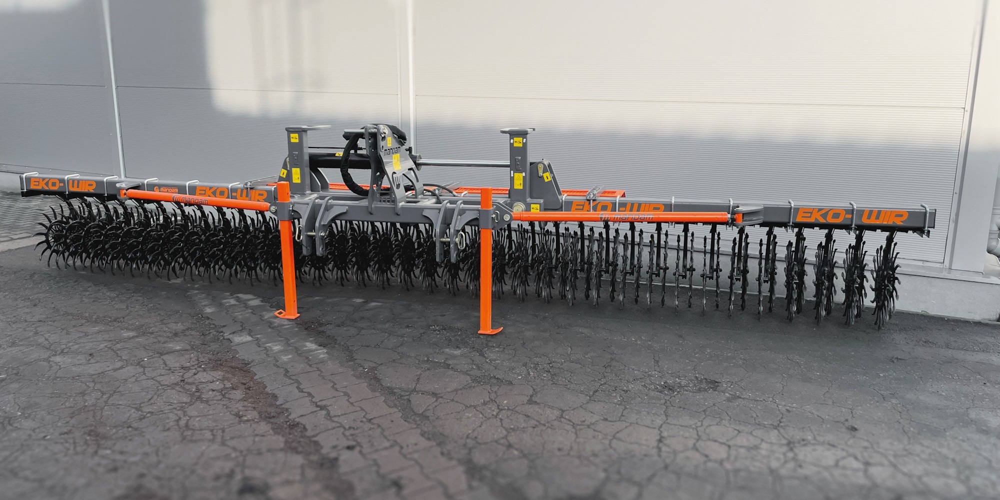 The rotary harrow EKO-WIR is designed for soil care. The harrow is primarily used for loosening the soil and mechanically removing weeds. During this procedure, the effect of enriching the soil culture with oxygen, nitrogen and other nutrients is also achieved, which are very important for obtaining an ideal substrate for plant growth from the very beginning. The harrow can be used on any type of crop, including sunflower, corn, beets, etc. and works well on all types of soil, especially on very dry soils. The unit can also be used to mix fertilizers or herbicides with the soil. The working elements are star wheels with a standard diameter of Ø540 mm, set in a tandem arrangement on a swinging arm amortized with 8 spiral springs, thanks to which it is possible for the wheels to deflect and adjust to the field surface during work. Thanks to this, the machine ensures quick and effective field care. EKO-WIR harrows can be optionally equipped with support wheels ensuring adequate support for the machine during work and when turning the machine.