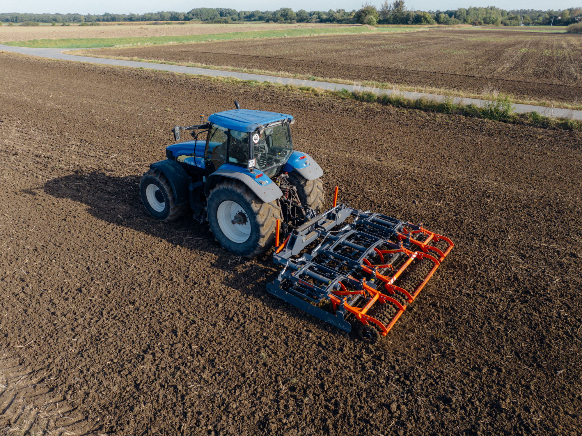 Die Saatbettkombination FLEX ist ein erprobtes Maschinenkonzept für die Saatbettbereitung. Sie wird in Arbeitsbreiten von 3 bis 6 m in angebauter (Modell FLEX) oder aufgesattelter (Modell FLEX-K) Ausführung angeboten. Die Maschine besteht aus 6 unabhängigen Sektionen, die eine effektive Saatbettvorbereitung ermöglichen. Die erste Sektion besteht aus verstellbaren Spurlockerer, die den von den Traktorrädern verdichteten Boden auflockern, die zweite aus Flacheisenwalze mit 355 mm Durchmesser. Daran schließt sich eine Sektion mit 3 Reihen von 32×10 mm Federzinken (serienmäßig mit gerader Schar, auf Wunsch mit 180 mm Gänsefuß) mit unabhängiger Arbeitstiefeneinstellung an. Die vierte Sektion der Maschine ist eine einfach einstellbare Einebnungschleppe, danach folgen zwei Walzen: eine Flacheisenwalze Ø300 mm (für die Zerkleinerung der restlichen Erdklumpen) und eine Gusswalze Ø 400 mm (verdichtet den Boden zur perfekten Vorbereitung der Aussaat). Die Arbeitsfelder der FLEX-Kombination sind an runden Rohren aufgehängt, wodurch sie sich besser an die Unebenheiten des Bodens anpassen.