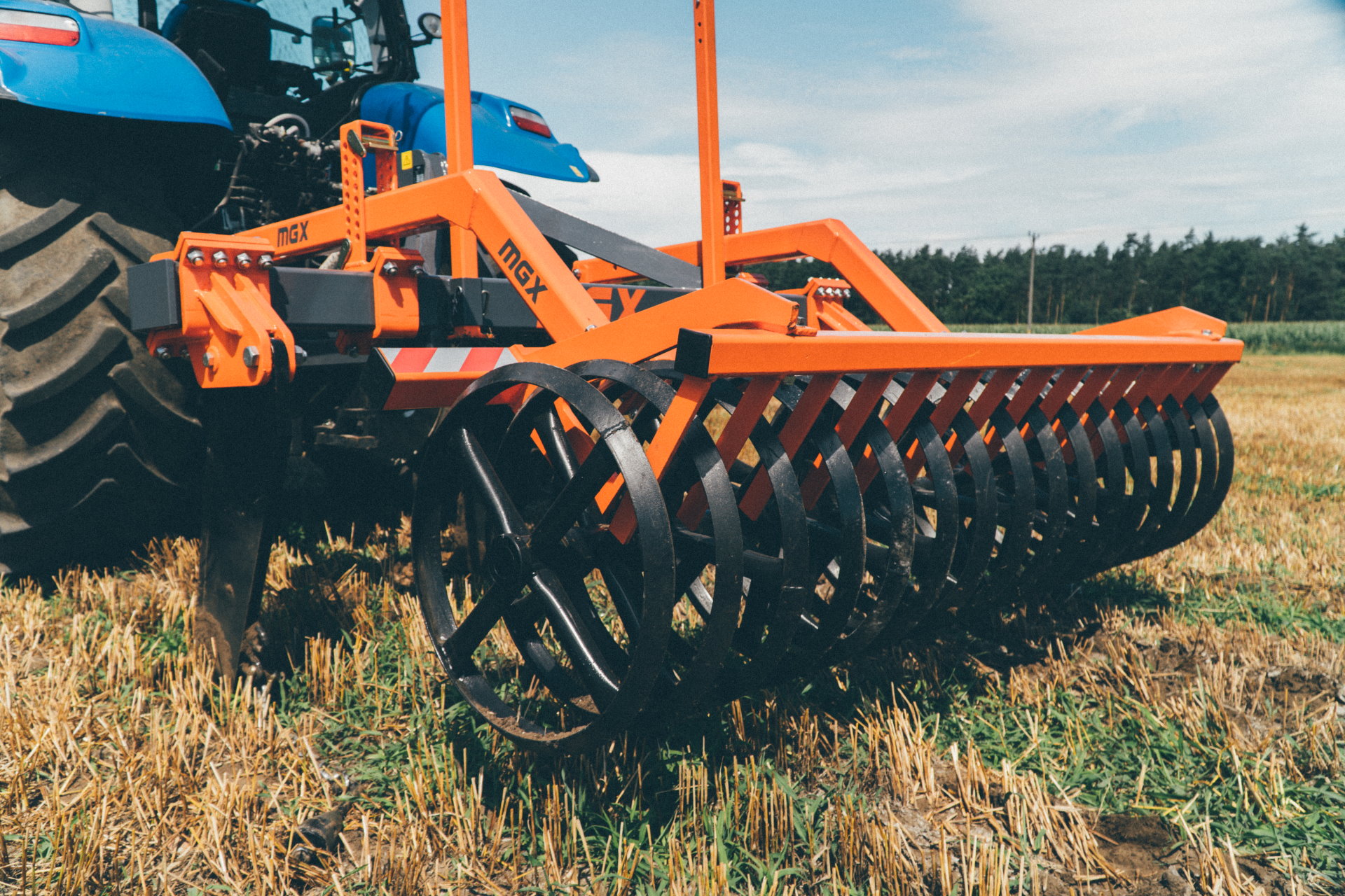 Der Tiefenlockerer MGX ist eine Konstruktion mit verschiebbaren Zinken und einer anschraubbaren Walze. Der Kunde hat die Möglichkeit, die ideale Maschine für seine Bedürfnisse zu konfigurieren. Es werden zwei Rahmen angeboten, die mit der entsprechenden Anzahl von Zinken nachgerüstet werden können. Unabhängig von der Breite und Anzahl der Zinken verfügt die Maschine über eine große Auswahl an Nachläufer. Sie ist mit einem geraden Zinken mit auswechselbarem Schneidmesser ausgestattet. Der MGX ist eine landwirtschaftliche Maschine zur Lockerung und Belüftung des Bodens in einer Tiefe von bis zu 60 cm, um seine physikalischen und biologischen Eigenschaften zu verbessern. Die Belüftung und Bewässerung der unteren Bodenschichten, die durch die Tiefenlockerung erreicht wird, bietet einen hervorragenden agrotechnischen Effekt und hat einen positiven Einfluss auf die Entwicklung der Pflanzen, die ein tieferes Wurzelsystem haben. Der MGX-Tiefenlockerer, der unmittelbar vor der Bodenbearbeitung eingesetzt wird, verbessert die Bodenstruktur und die Bedingungen für die Entwicklung von Hackfrüchten.