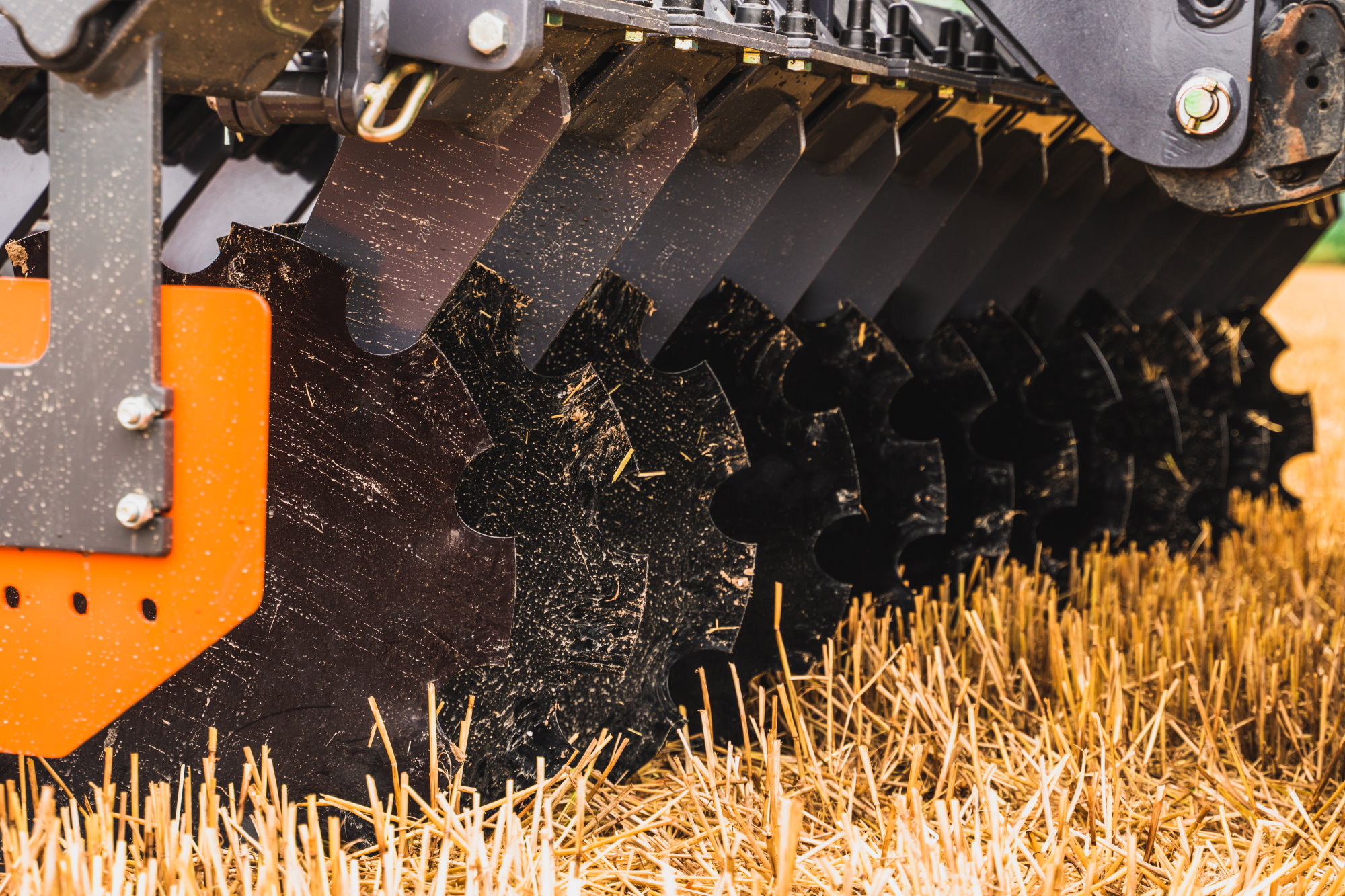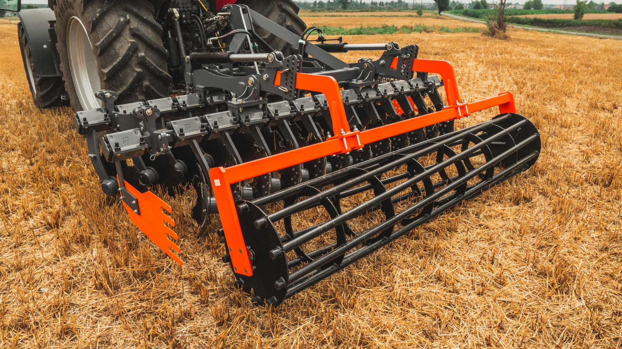 The GAL-E disc harrow is designed for post-harvest and pre-sowing cultivation, both with and without tillage. The unit can also be used for mixing catch crops or cultivating uncultivated areas with tall, self-seeded plants. Like all Mandam disc harrows, also GAL-E is equipped with 5-year warranty maintenance free Mandam quick release disc hubs. Unlike the GAL-C version, the GAL-E disc harrow features arms on cylinders that hydraulically lift the roller during transport & storage. Additionally, the center distance between the disc rows has been reduced to 800mm, making the entire machine more compact, facilitating transport, storage and maneuverability.