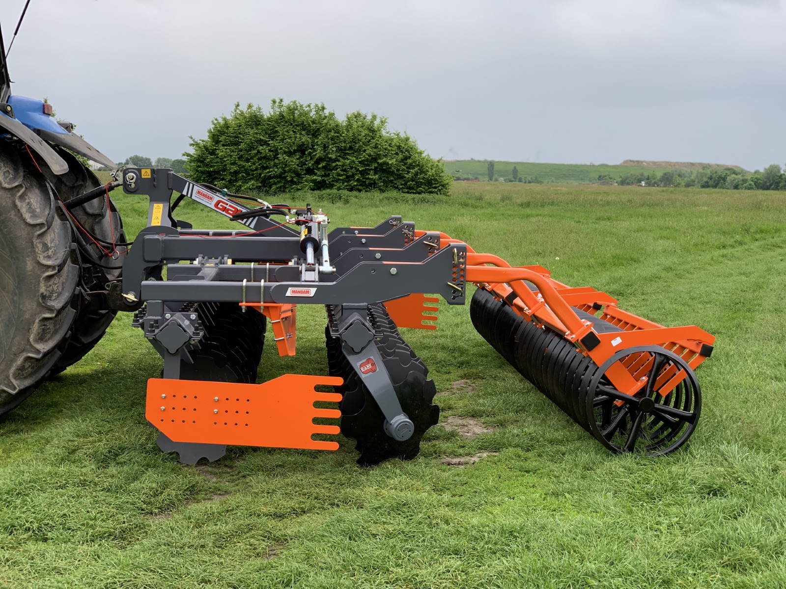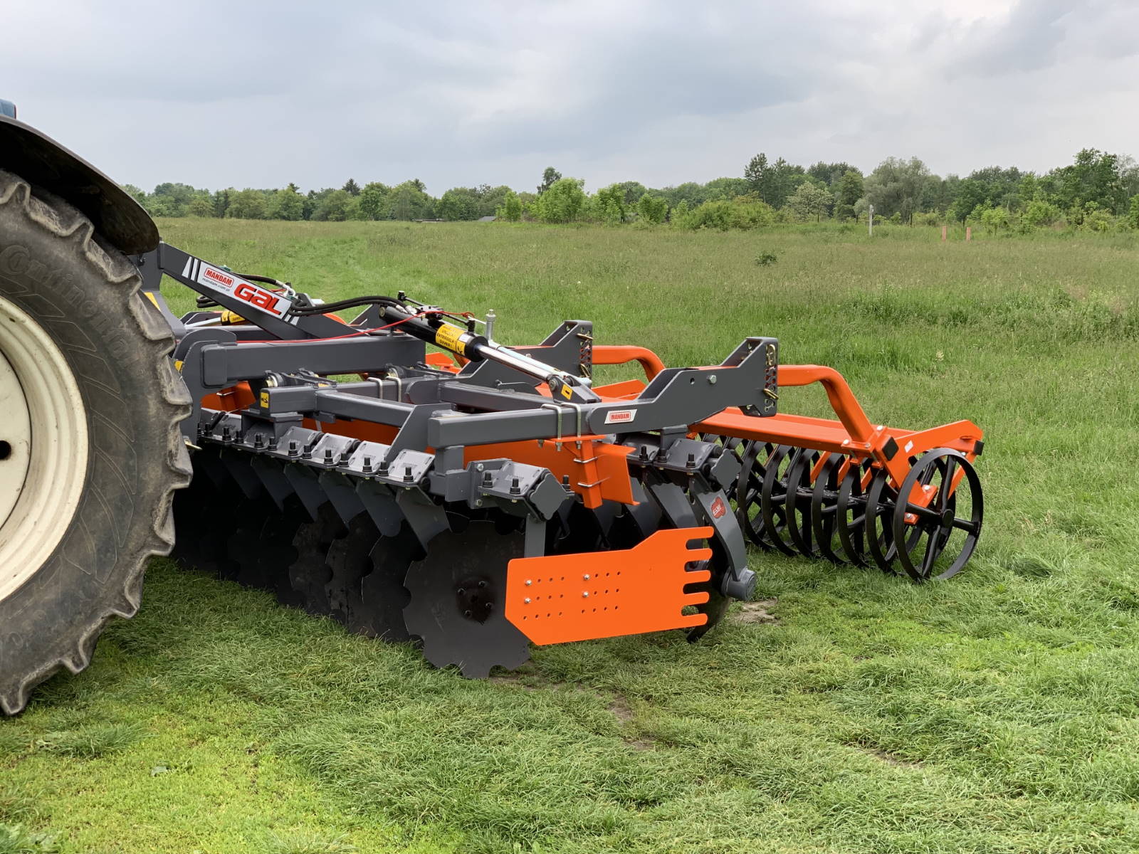 GAL-C compact disc harrows with two rows of 560mm boron steel notched discs mounted on maintenance free fully sealed bearing hubs. Working units mounted to the frame by means of rubber suspension rollers. Many optional accesories available as variety of rollers, scrapers, screens and more.