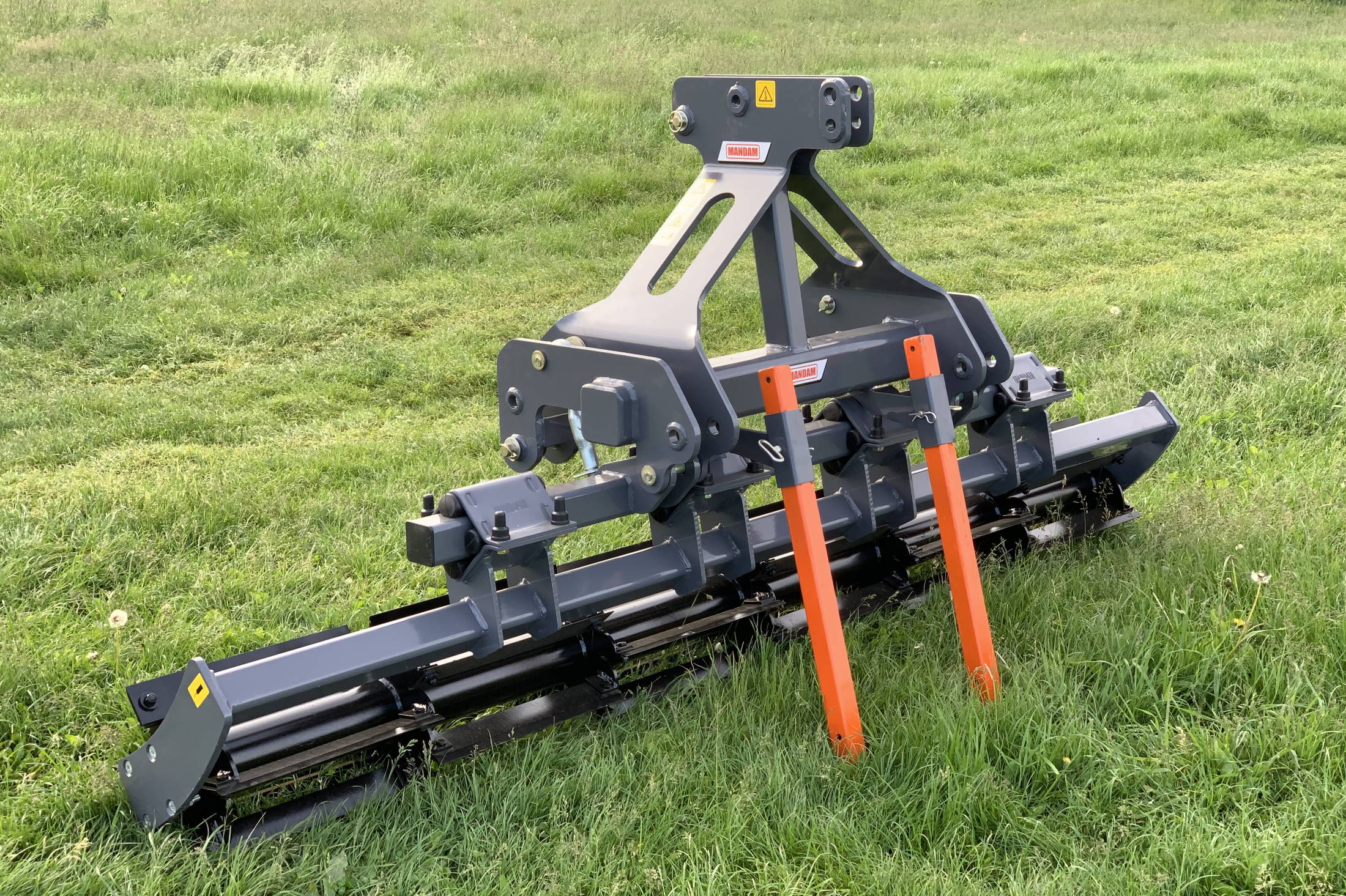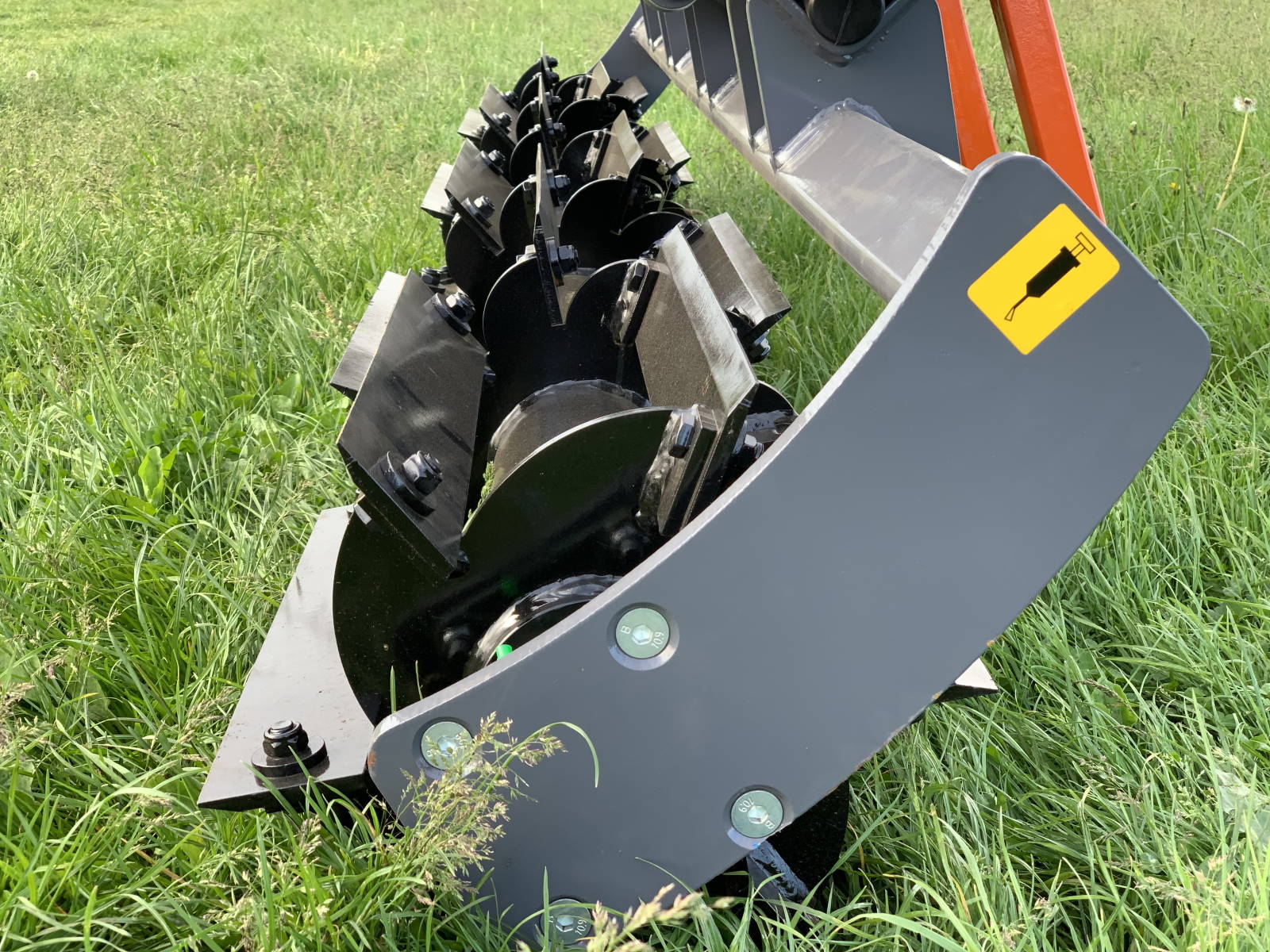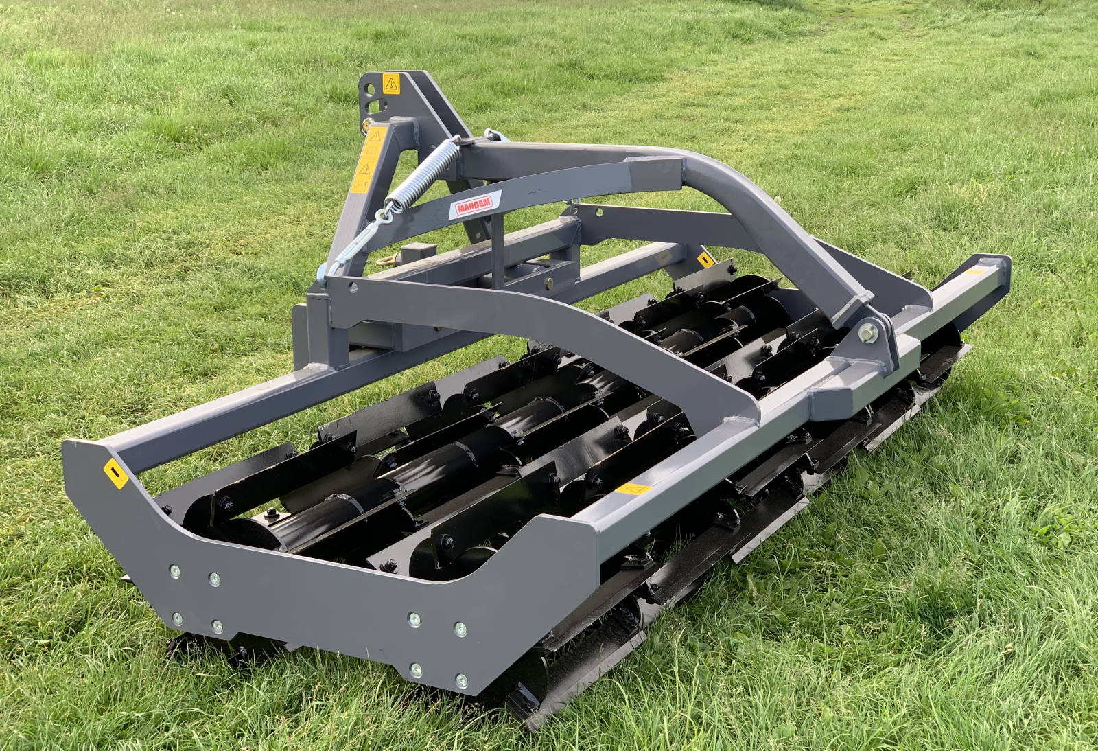 The working depth of the machine is 2-3 cm (knife recess). The working tool of the tandem knife roller is a straight or special knife made of HARDOX steel. The knives are installed on two ø460 mm rollers with a different number of rows, thanks to which the cutting marks of the cooperating rollers do not overlap.