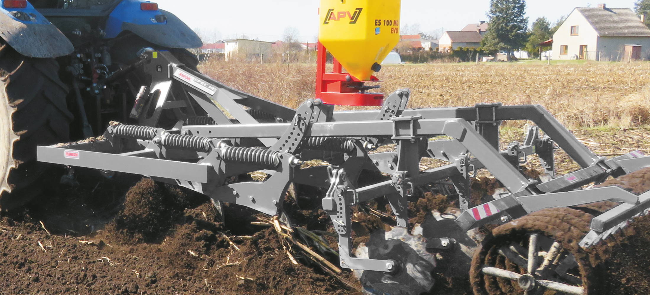 Spec HD (heavy duty) is the tougher version of regular SPEC cultivator. That three row cultivator is designed for stubble cultivation and tillage. Equipped with double spring proteciton with updated swingarm geometry, is able to withstand much greater ground preassure than the regular machine. Minimal activation imput force is 550 kg per tine, which allows, after removing detachable wingshares, aggressive tillage as deep as 30cm. Variety of press rollers to choose from, different toughness points and profiled tines, fulfill the image of the tough while universal machine.