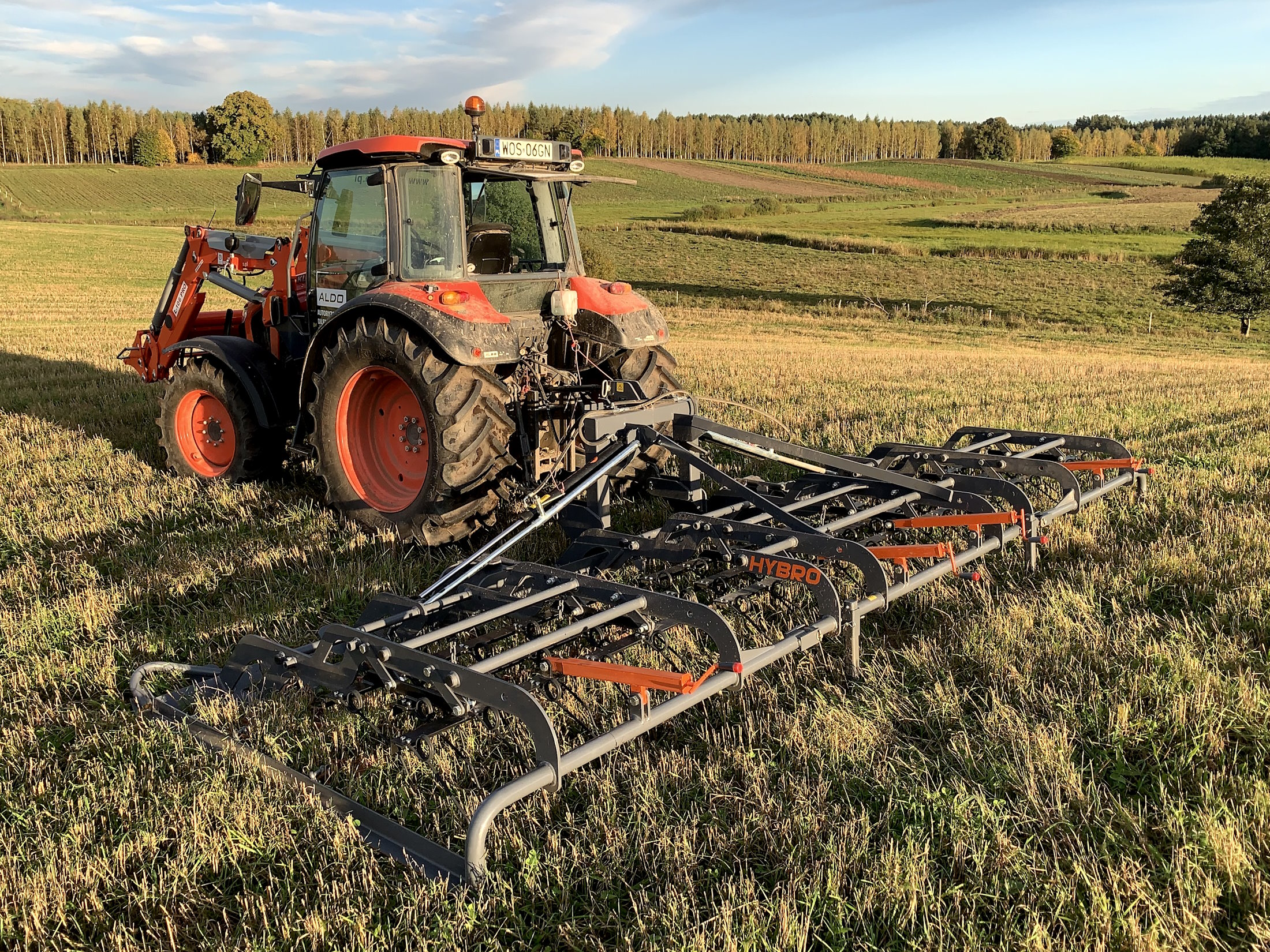 HYBRO w pierwszej sekcji składającej się z włók żeliwnych wyrównuje powierzchnię łąki, niweluje kretowiska, rozdrabia odchody zwierzęce i wykonuje wstępną areację. Druga sekcja brony sprężynowej doskonale spełnia funkcję areacji łąk i innych obszarów zielonych, znakomicie przygotowując je pod siew trawy (dosiewanie ubytków). Hybro może być wyposażone na życzenie klienta w siewnik pneumatyczny i walce cambridge do siewu trawy.