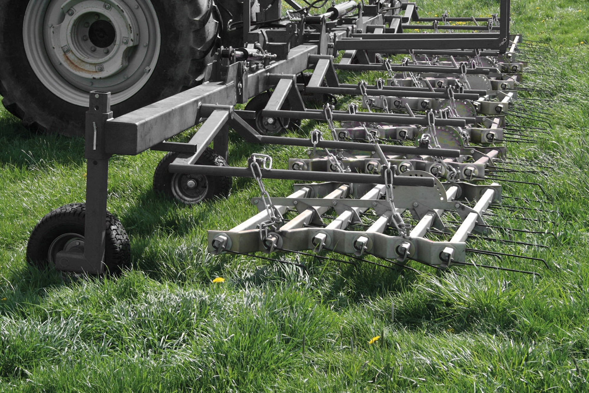 Dodatkowo, zastosowanie zawieszanych pól roboczych maszyny powoduje, że podczas pracy, każde pole dostosowuje się indywidualnie do powierzchni obrabianego pola i pozwala na zwiększoną wydajność jego obróbki.