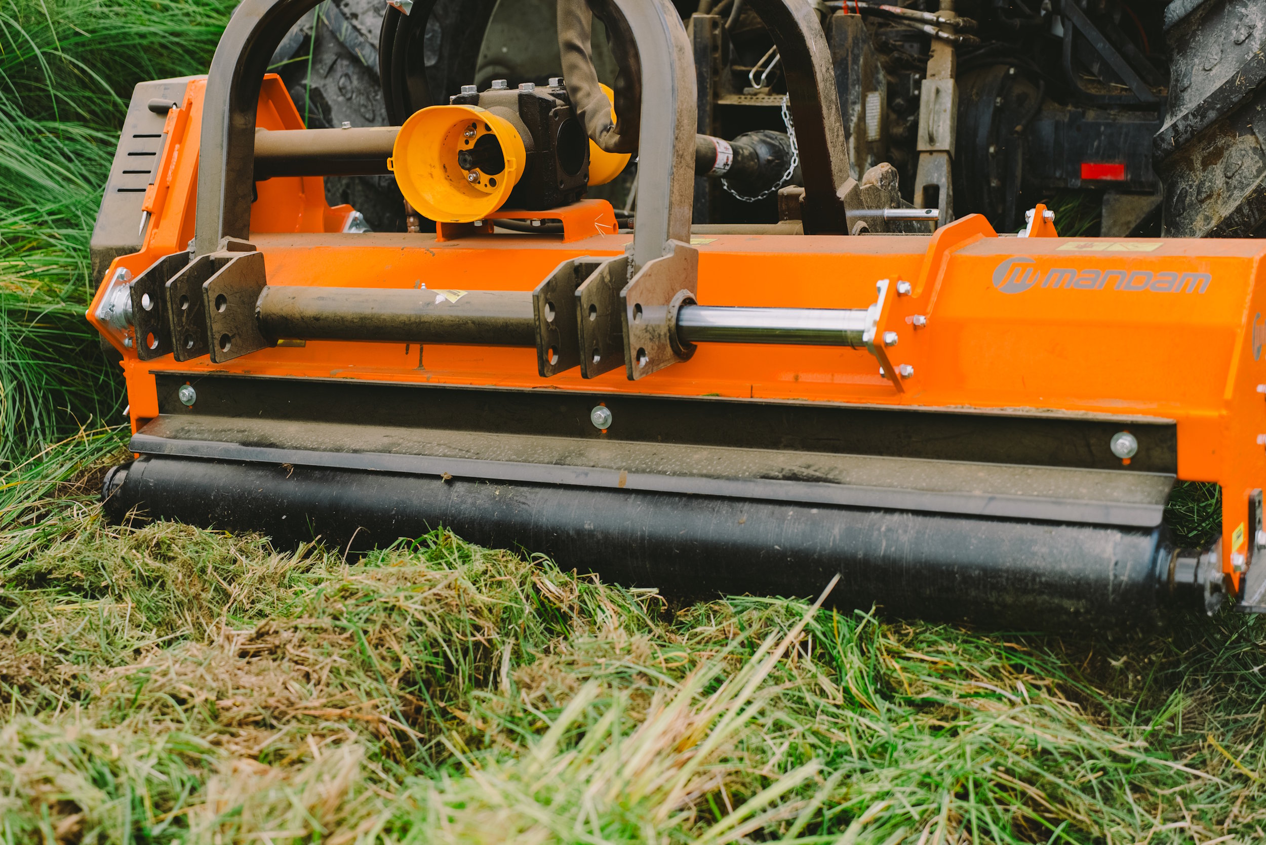 • Wytrzymały wał roboczy o średnicy 170 mm z zamontowanymi młotkami bijakowymi (o masie 1,7kg) koszącymi gałęzie i konary do 80 mm średnicy.
