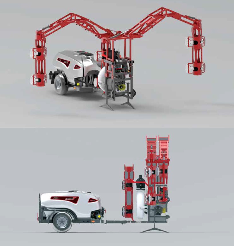 - System opryskowy Octopus – umożliwia oprysk w 3 rzędach jednocześnie, z regulacją ramion w pionie, szerokości oraz w poziomie za pomocą siłowników hydraulicznych.