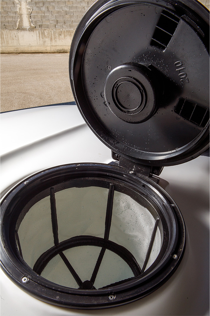 - Indukcja chemiczna przez filtr koszykowy zbiornika z możliwością płukania kanistra.