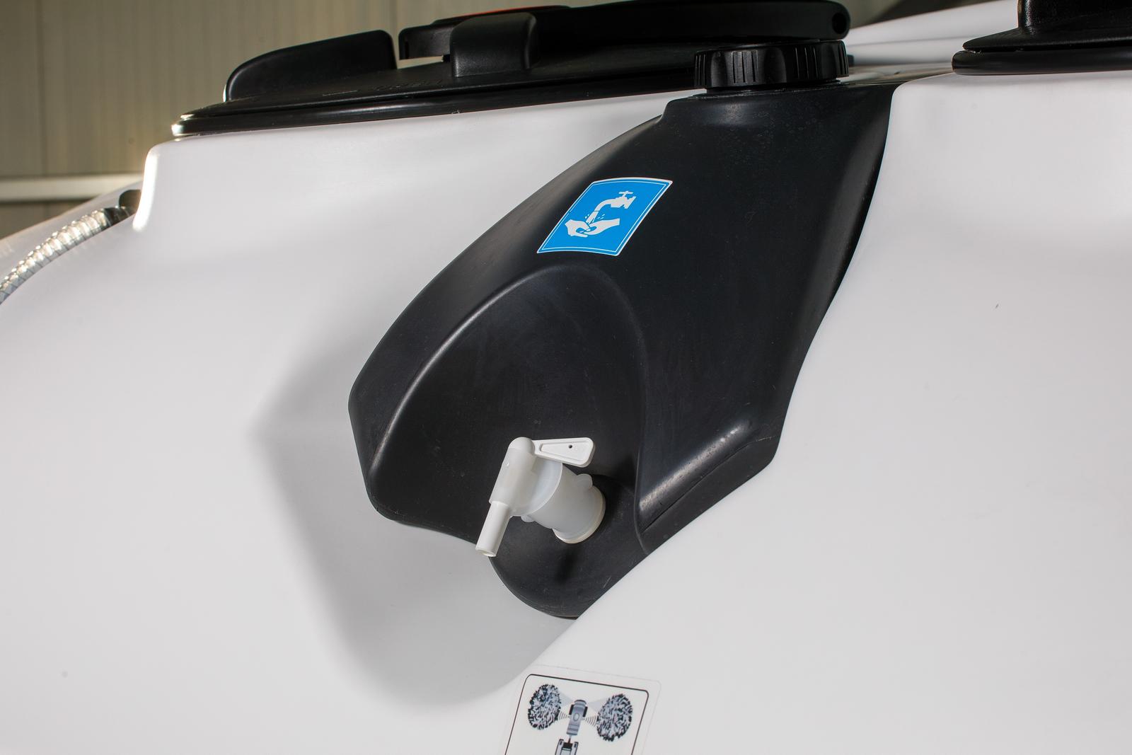 - Zbiorniki czystej wody do płukania zbiornika i mycia rąk.