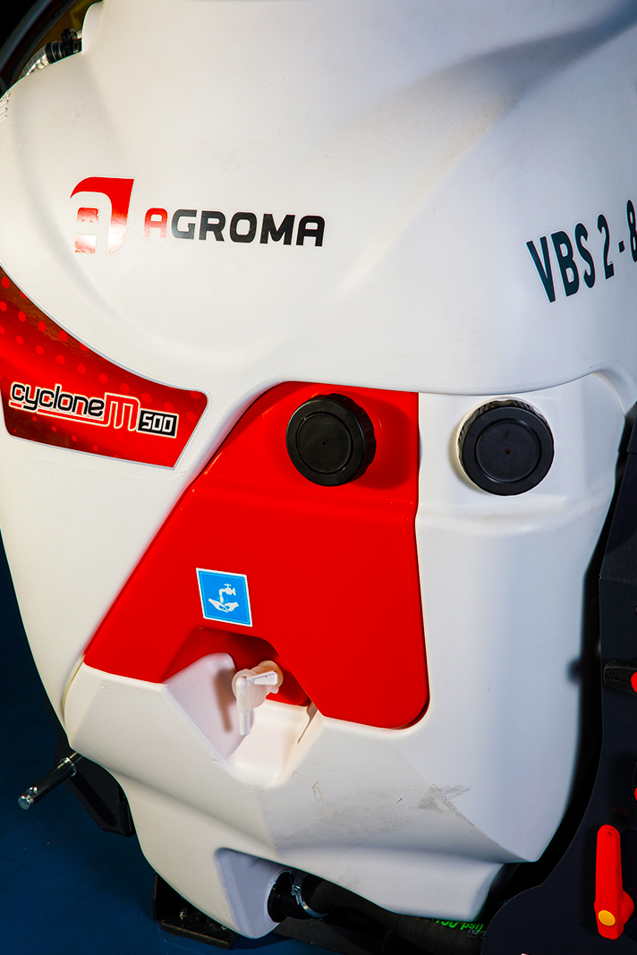 - Przewody opryskowe ze stali nierdzewnej z 16 podwójnymi dyszami antykapaniowymi oraz 8 regulowanymi dyszami antykapaniowymi.