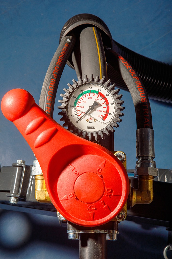 - Panel boczny z zaworami do oprysku i operacji czyszczenia.