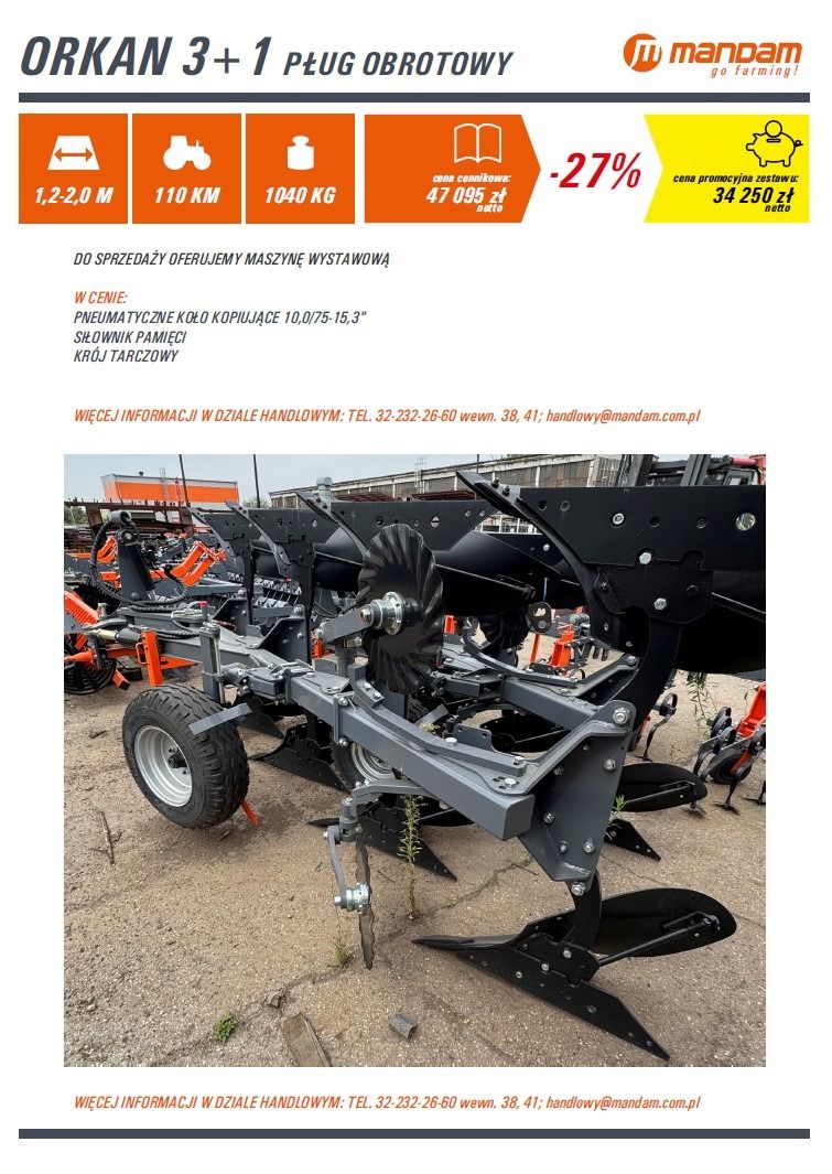 DO SPRZEDAŻY OFERUJEMY PŁUG OBROTOWY ORKAN 3+1