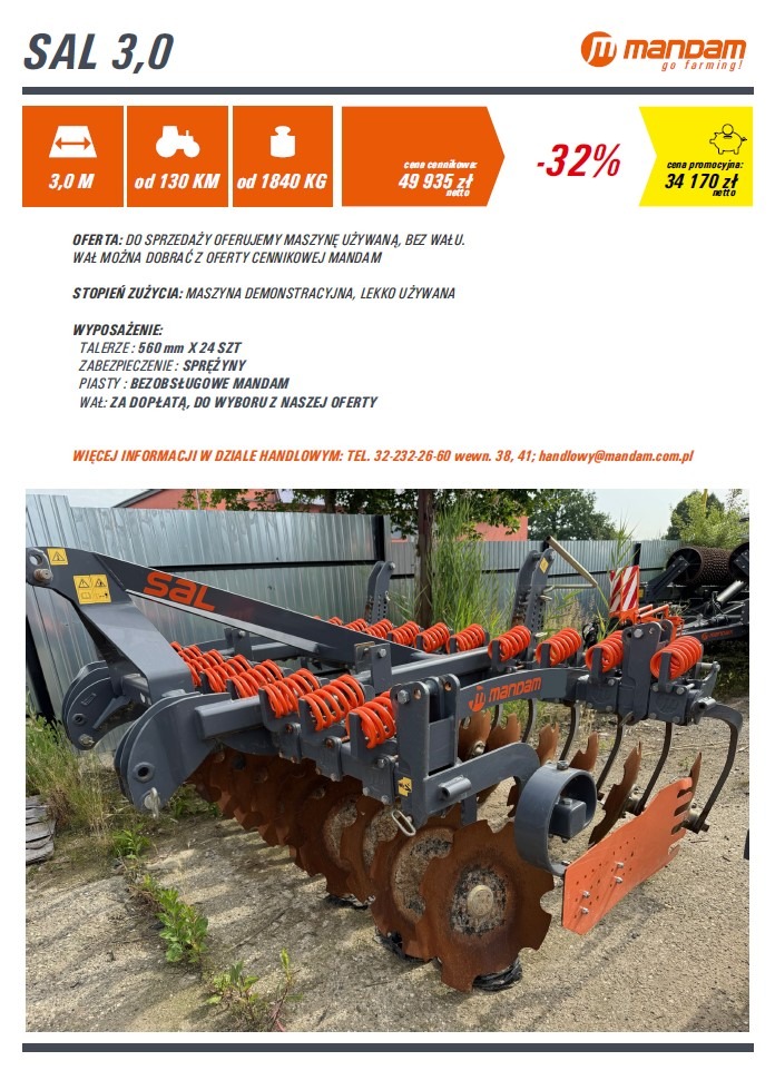 DO SPRZEDAŻY OFERUJEMY MASZYNĘ SAL 3,0, UŻYWANĄ, BEZ WAŁU